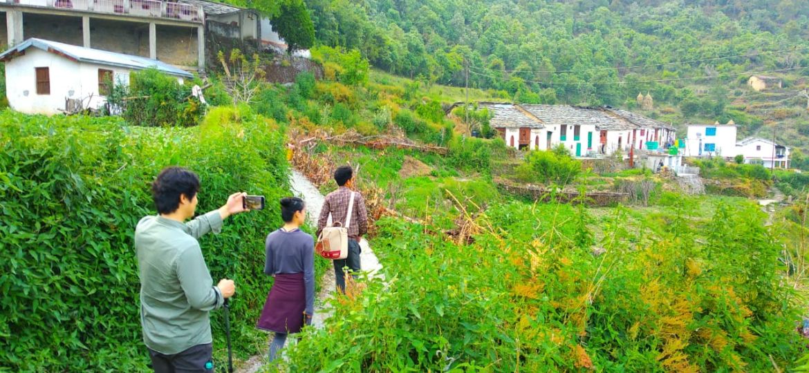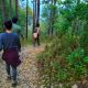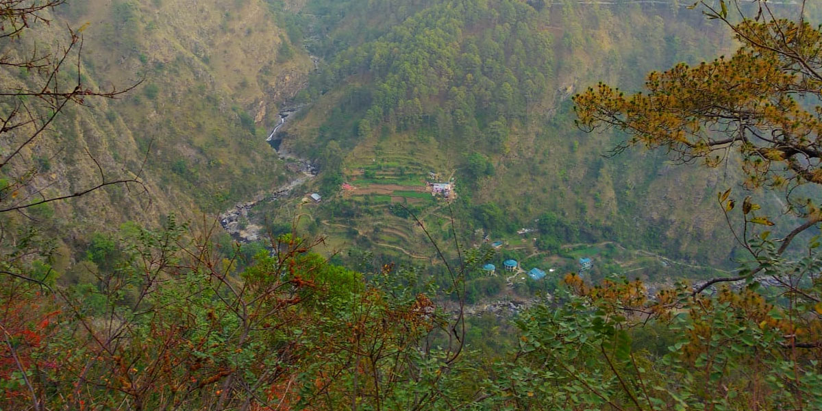 This trek, which starts at Soulitude needs one to cross the river, just beyond the gates and take a steep uphill pagdandi via forested areas to the top of the hill. Just short of the hill top, is a small clearing which is a great spot to take rest before moving on. This ascent – phase 1 of the climb would take at least 2.5 hours. At the top, one will come across a local school and beyond which lies the Bametha Gaon, where one could leisurely amble to take an up close look at village life and the local architecture in these remote hills of kumaon. The views from the top, looking down into the valley with the river flowing through it is truly breath taking. After taking in the views from the hill, which is phase 2, begins phase 3 of the trek, the descent. From this point, there are two ways to come back to Soulitude. The short cut would entail taking the same route back, which would be approximately an hour-hour fifteen on the downhill. However if one chooses to make it a full fledged day long trek, the route back is a much longer one. Further from the village, the dirt track leads one into descending the hill from the other side, whereby one comes down steadily to a point after which there is a uphill trek that joins the dirt track to the main road head. And from the road, one takes the Pine Forest trek back home. This longer descent would take another 2-2.5 hours.
