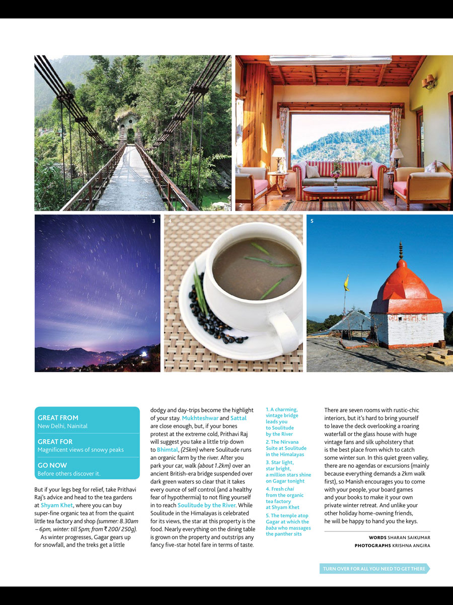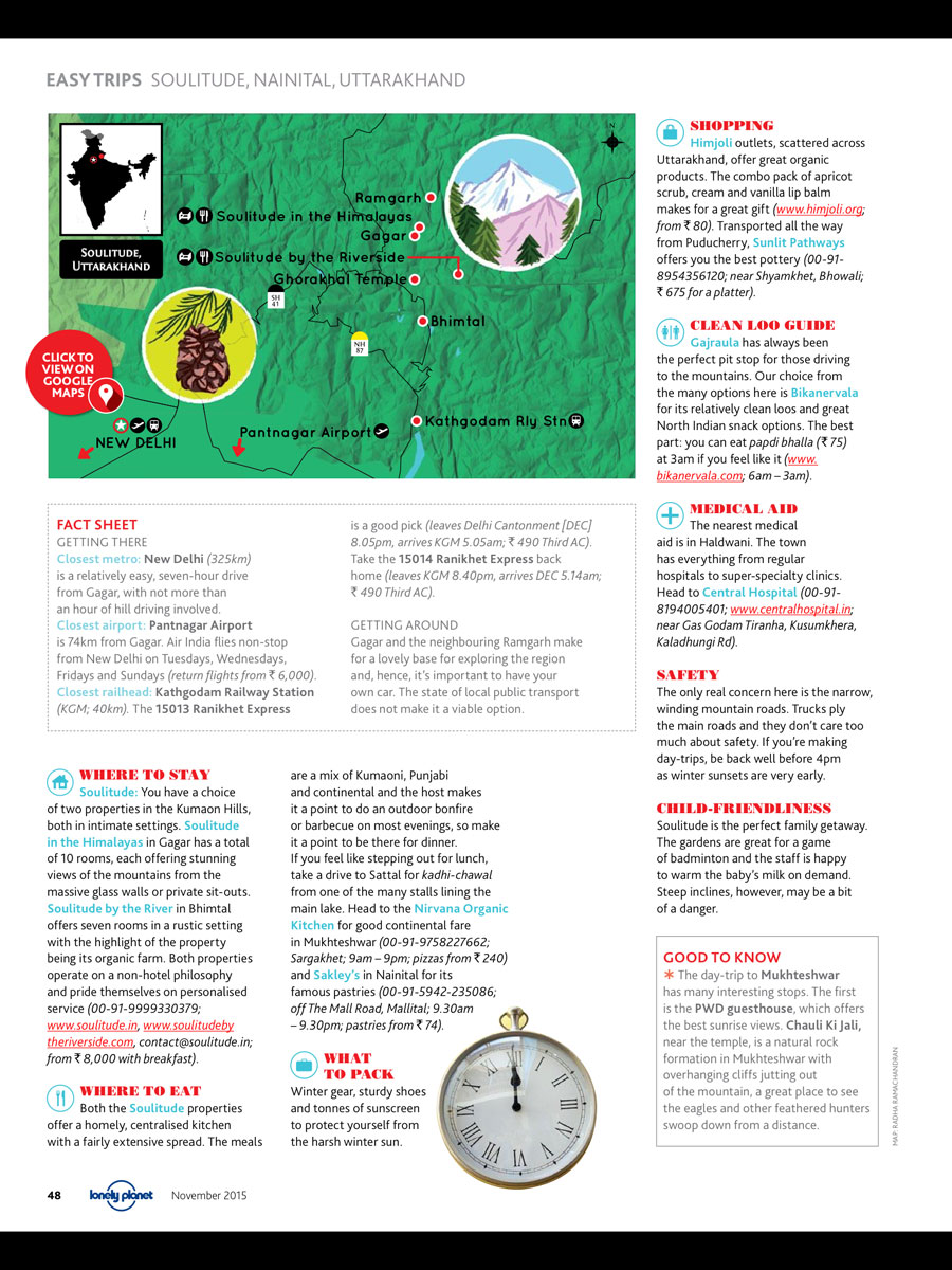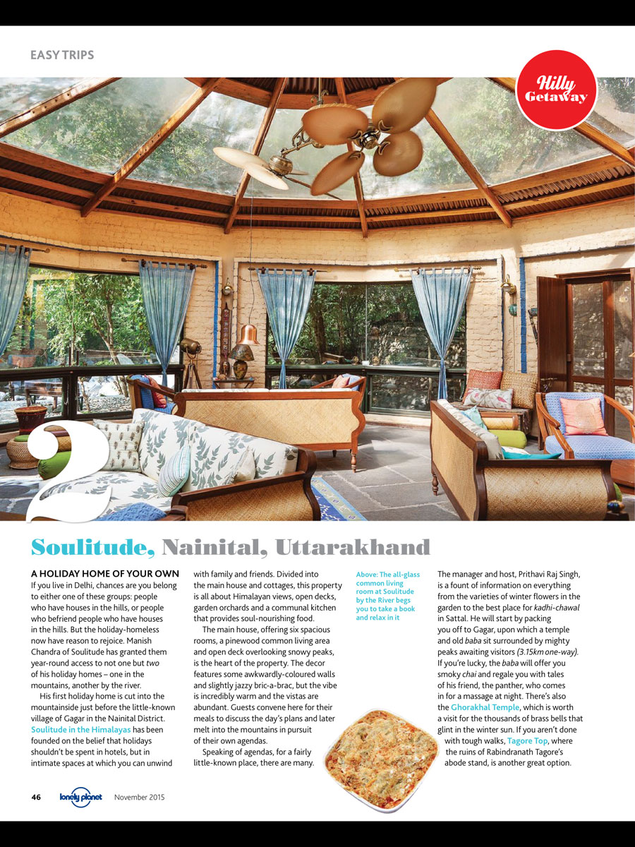 By Soulitude Riverside Soulitude in Publications November 4, 2015 November 2015 LONELY PLANET Magazine India Soulitude Riverside / About Author More posts by Soulitude Riverside