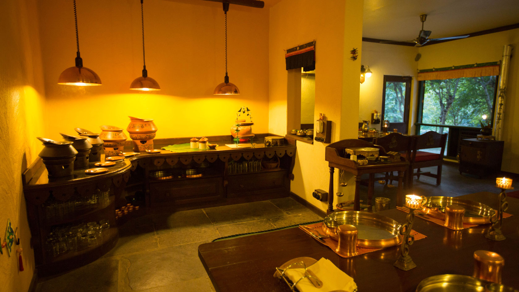 Meals are personally served by the Soulitude staff in this village style Dining Room decorated with traditional artifacts.