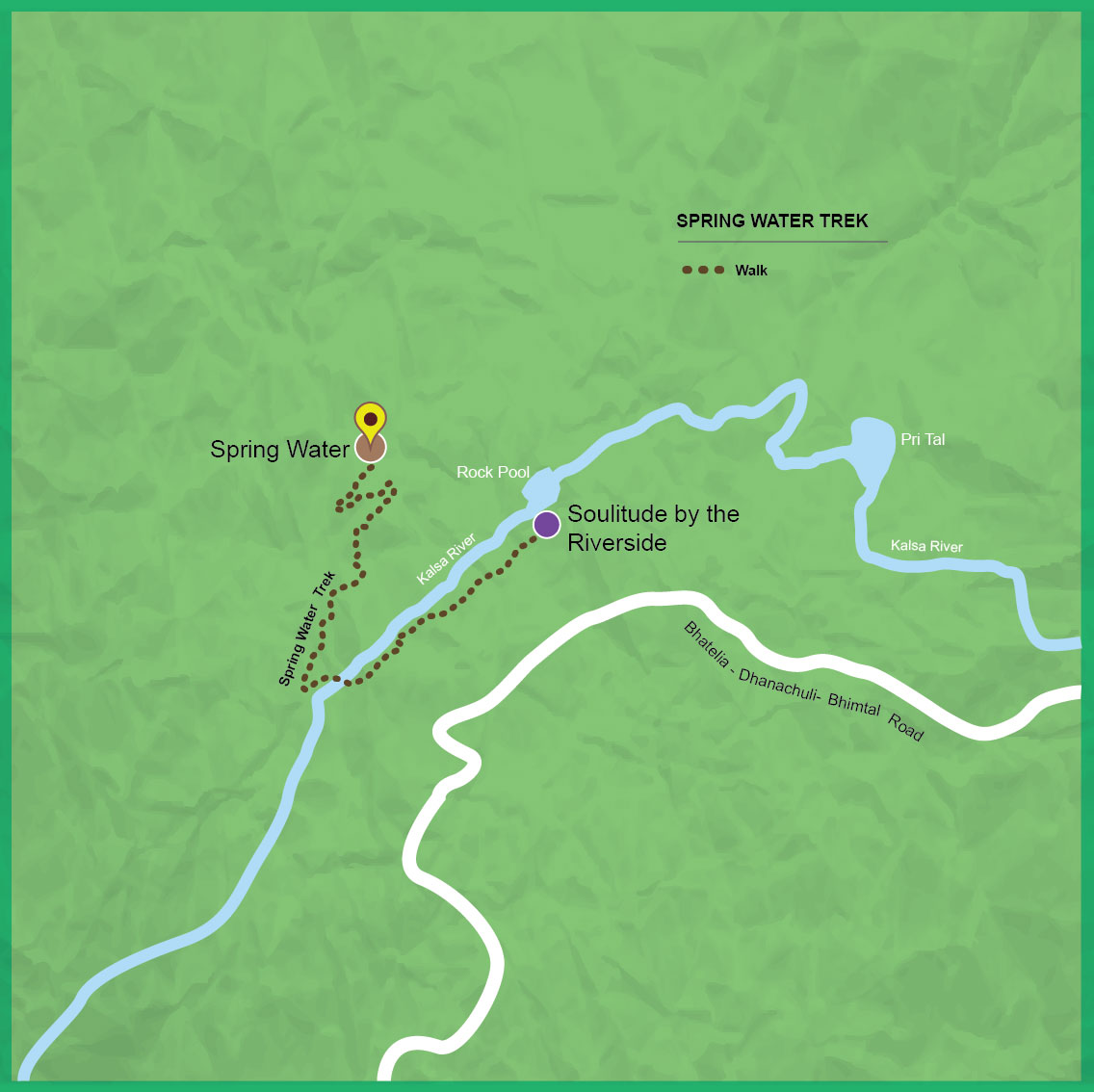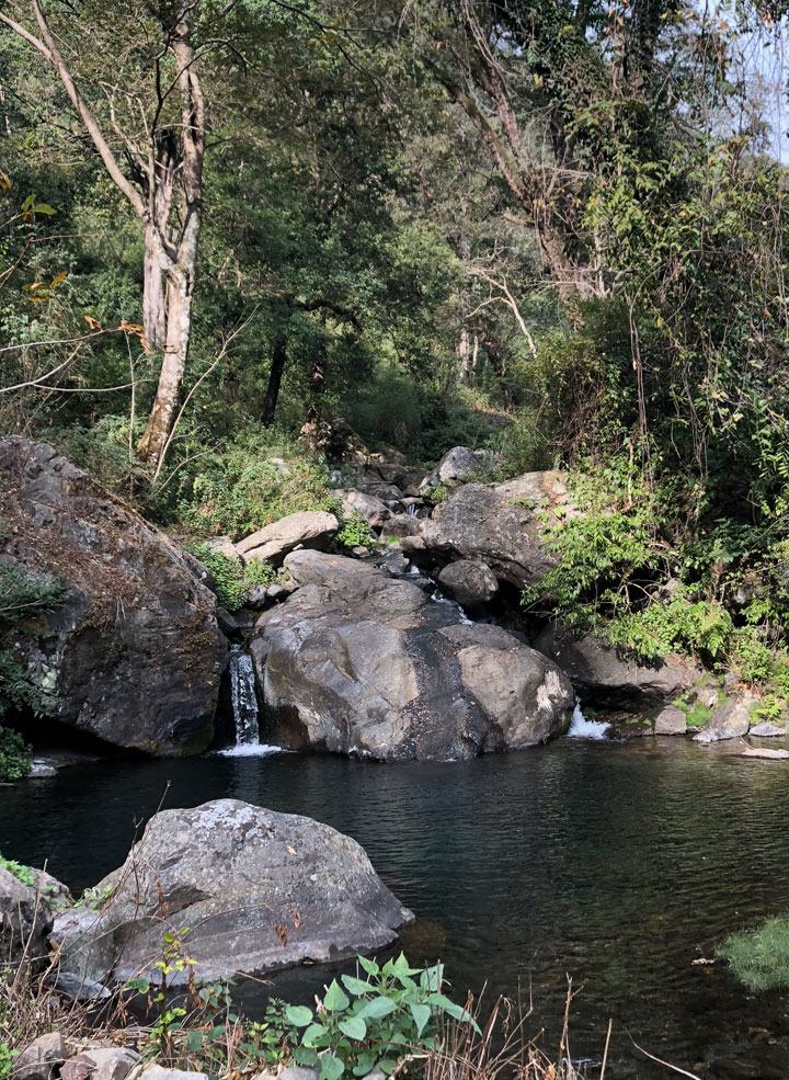 Just beyond the gates of Soulitude, across the river followed by a short walk on the local village path through a heavily wooded area is a clearing with a small water spring that drains into a small pond. Since this spring is the source of potable water for the village, may we kindly request our guests to refrain from littering this space or indulging in any water activity. Those interested in bird watching, may like to venture further into the forest to view owls perched on the trees there.